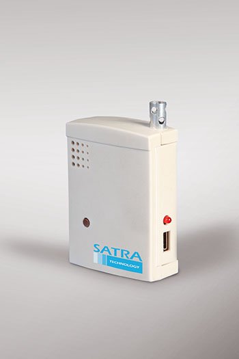 The SATRA Sensor is a self-contained miniature sensing system for remote monitoring of air temperature and humidity. It is designed to monitor in-factory processing conditions, for example cement drying or heat setting tunnels in footwear manufacturing. It will also monitor environmental conditions encountered by products during storage or transit, for example in seaborne containers.