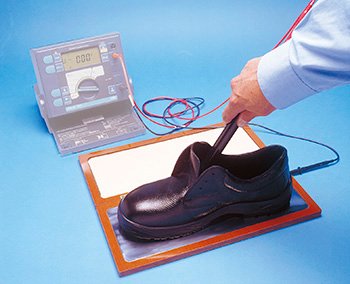 This equipment has been developed to allow non-destructive testing of conductivity and antistatic properties of footwear outsoles, within a production environment. The simple conductivity tester consists of a probe and a wet/dry pad to place the sample on during testing.