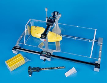 The jig is manufactured in aluminium and clear plastic sheet. There are two built-in digital slides, both of which can be zeroed at the appropriate datum position. It also incorporates an angled measurement device that facilitates the location of the last joint line. A separate pair of digital callipers and a toe spring gauge are also supplied.