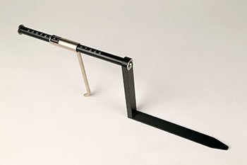 The flat bar is inserted in the shoe and pushed into the toe. The slider is then moved along the scale until the curved bar touches the heel. The longest length can be found by moving the device vertically and locating the curved bar to the point of maximum heel curvature. At this point the size of the footwear can be read off the scale.